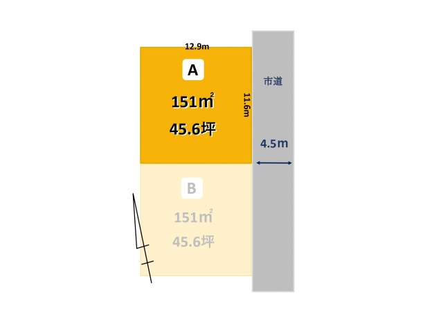 | 接道状況 | 一方(公道・南東側・間口11.6m・幅員4.5m) | ||